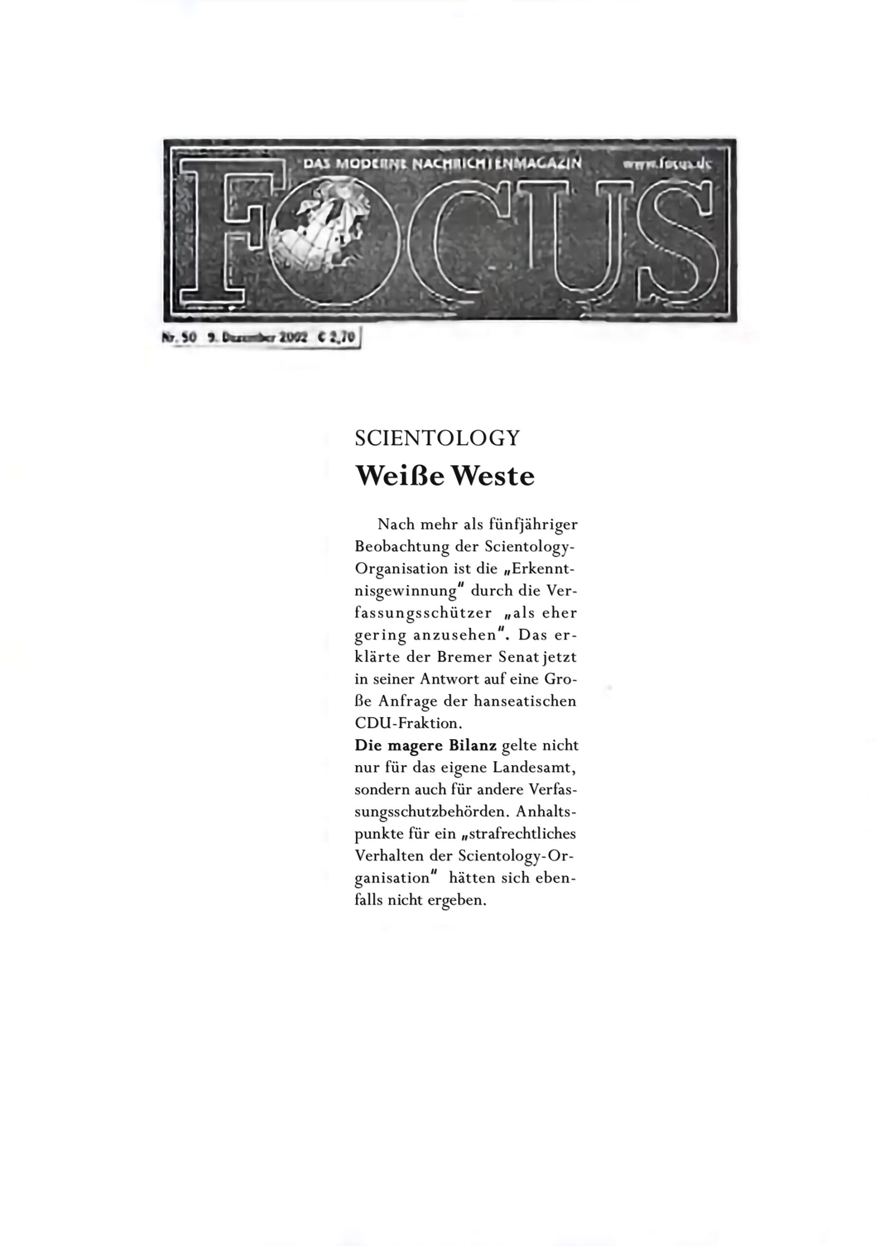 Der Verfassungsschutz hat der Scientology Kirche wiederholt bestätigt, dass sie sich an Recht und Gesetz hält und keinerlei Bedrohung für unseren Staat darstellt.
